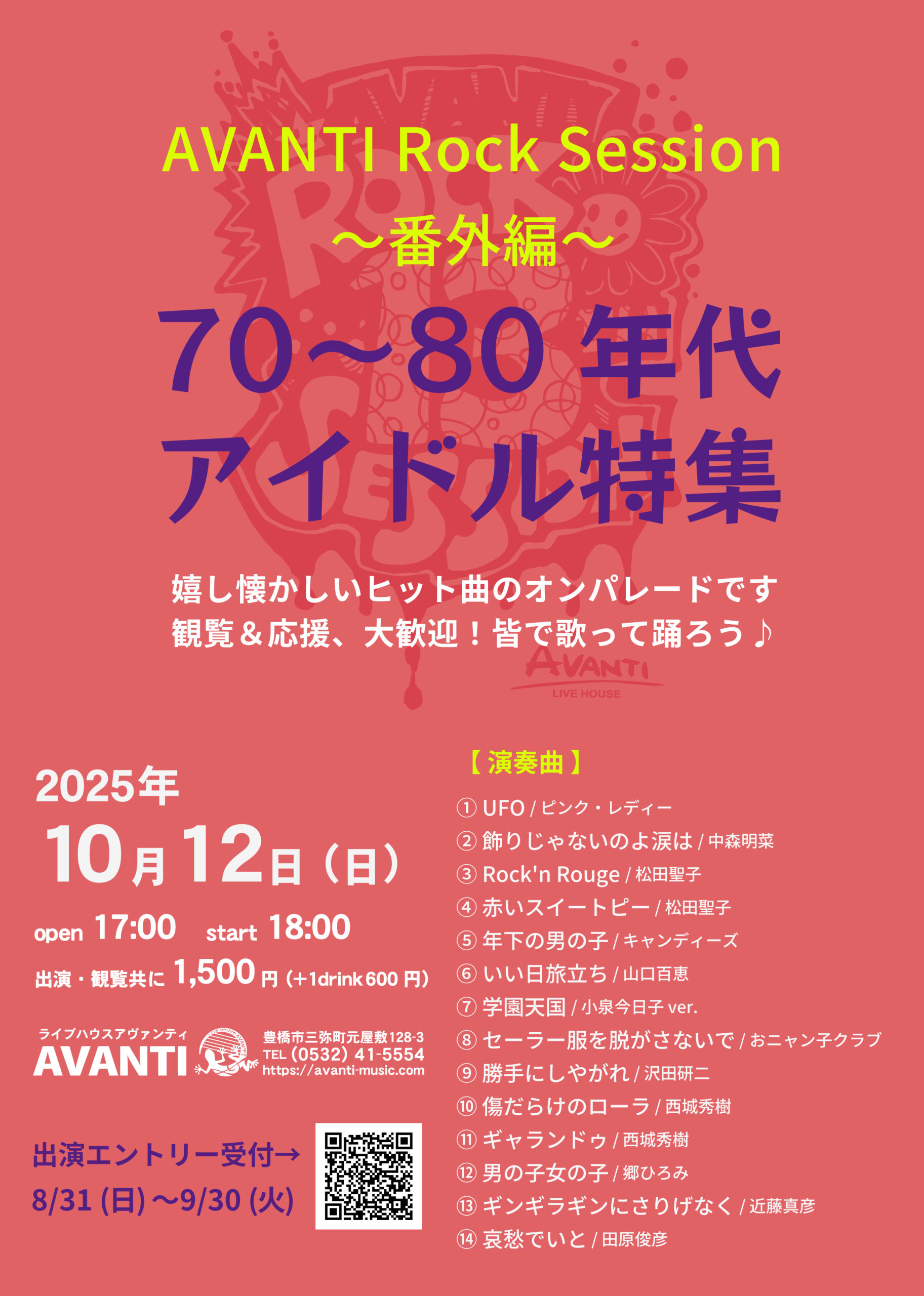 | イベント名 | ロックセッション番外編 70〜80年代アイドル特集 |