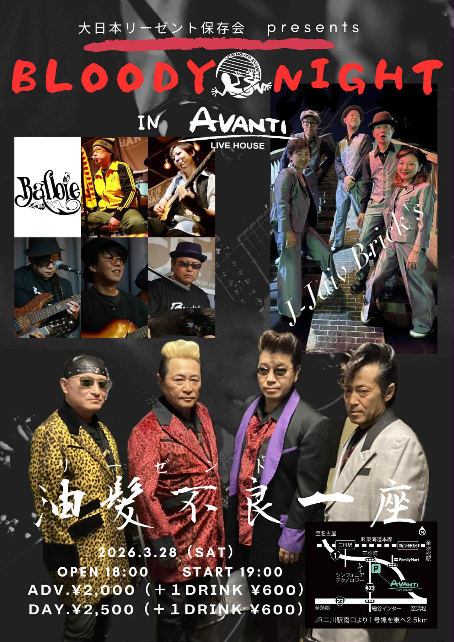 | イベント名 | 大日本リーゼント保存会Presents Bloody Night in AVANTI |