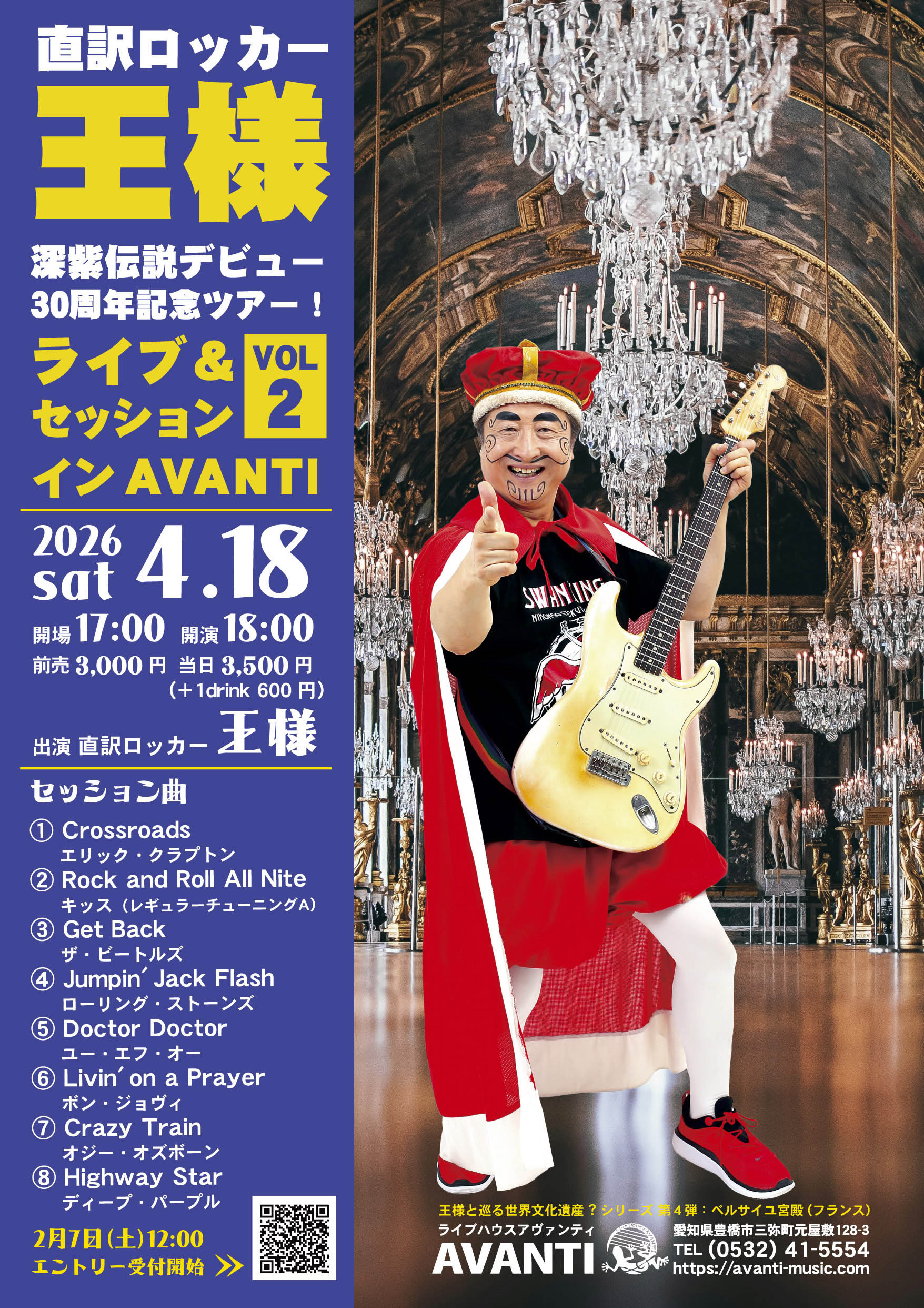 | イベント名 | 直訳ロッカー 王様 深紫伝説デビュー30周年記念ツアー! ライブ&セッションVOL.2 インAVANTI |