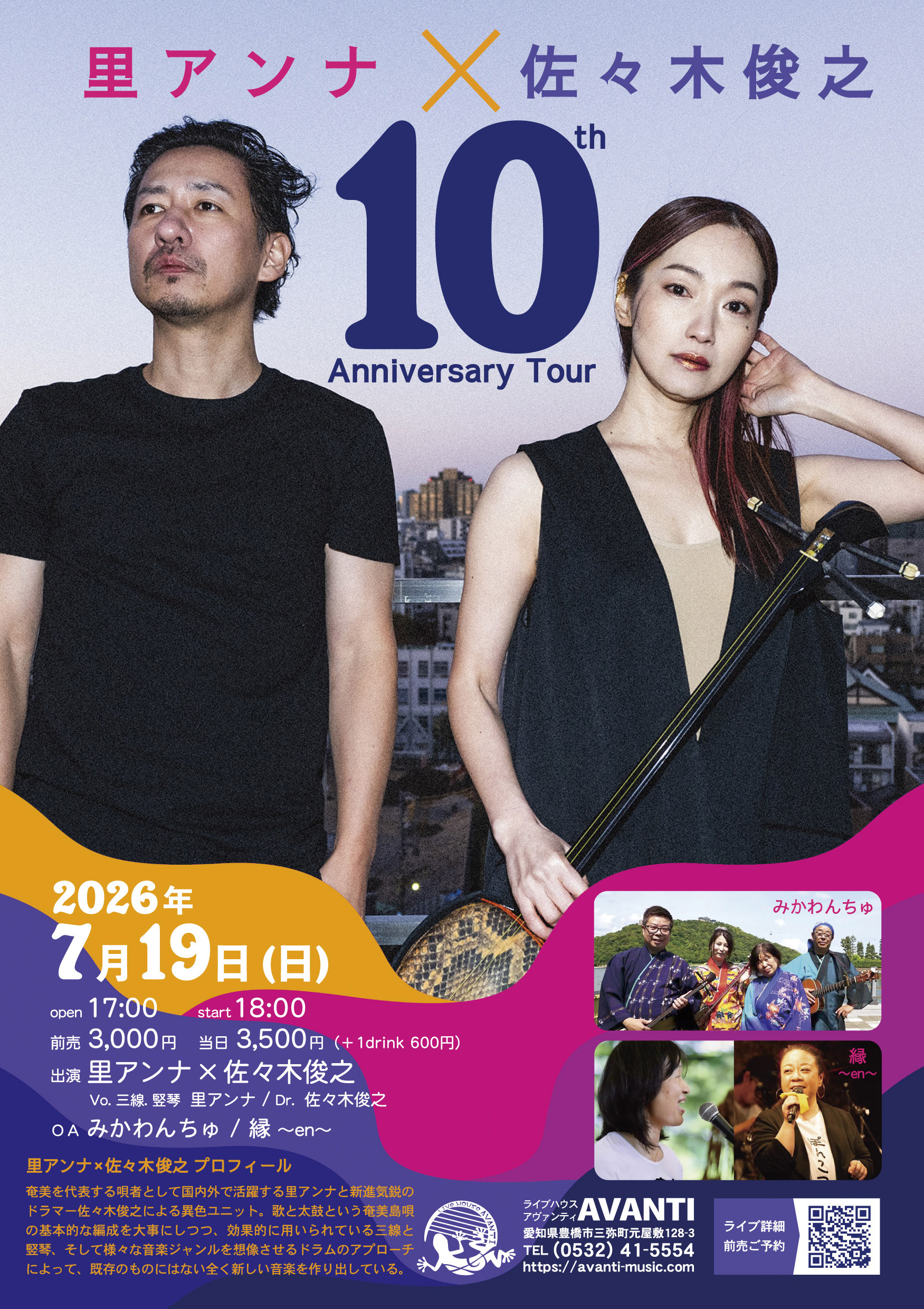 Vo. 三線. 竪琴 里アンナ /  Dr. 佐々木俊之